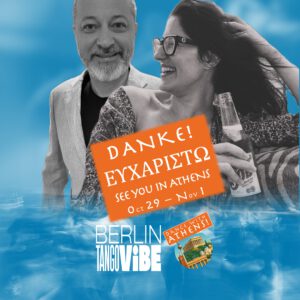 🇬🇧 Off to Athens! Join us for Berlin Tango ViBE in our partner city from October 29 to November 1. Berlin DJs will be playing, and show couples will be dancing in the local milongas. Experience the unique energy where Berlin meets Athens—don’t miss it!